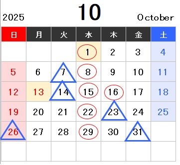 2025年10月の定休日・短縮営業日・臨時休業2025-10-12